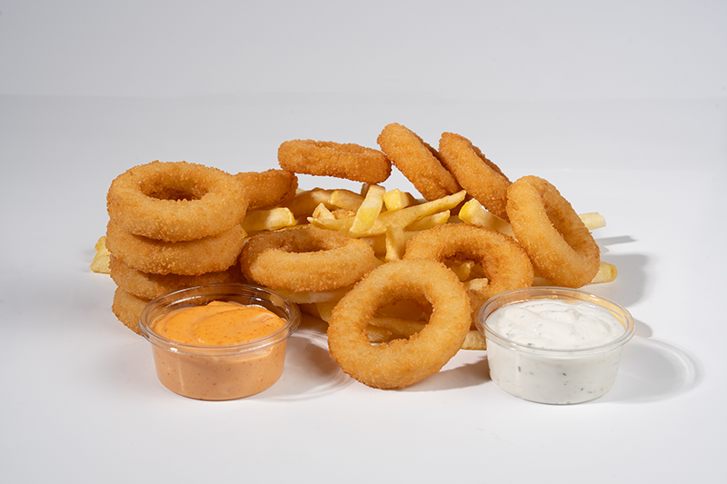 4 Adet Soğan Halkası • 4 Adet Mozzarella Stick • 1 Adet Sosis (100 gr) • Dynamite Sos • Ranch Sos • Sweet Chili Sos • Patates Kızartması