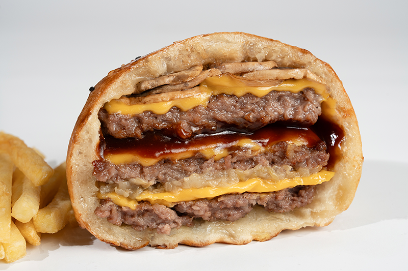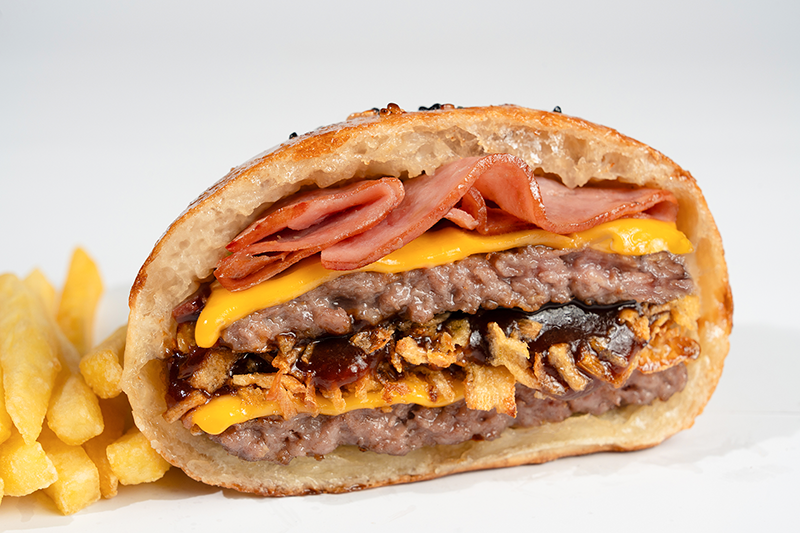 1 Adet (100 gr) veya 2 Adet (200 gr) Burger Köftesi • Cheddar • Dana Füme • Kıtır Soğan • Tütsülenmiş Barbekü Sos.
