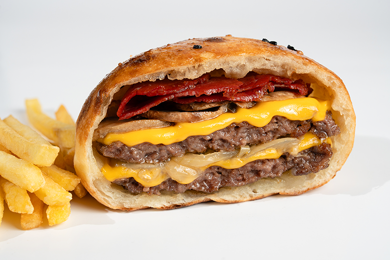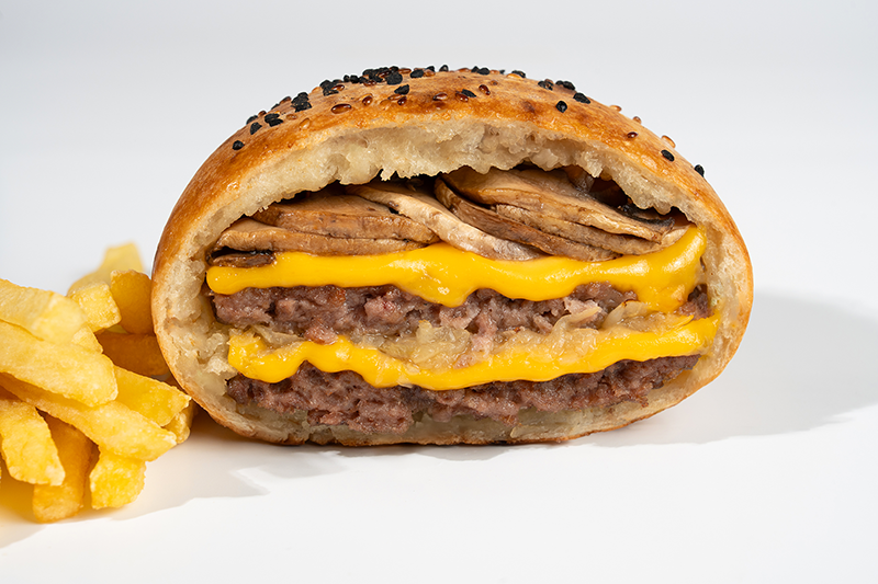 1 Adet (100 gr) veya 2 Adet (200 gr) Burger Köftesi • Cheddar •Dana Füme • Napolitan Sos • Karamelize Soğan • Soslu Mantar.