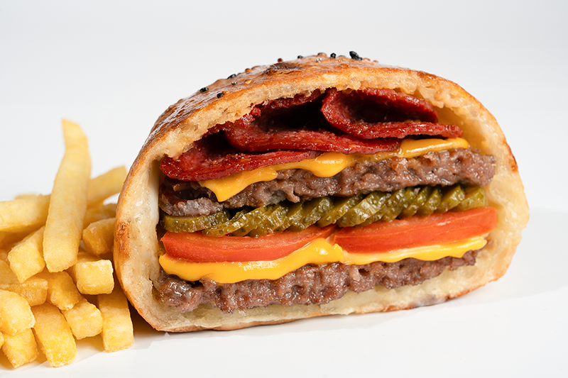 1 Adet (100 gr) veya 2 Adet (200 gr) Burger Köftesi • Cheddarar• Dana Pepperoni Sucuk• Domates • Turşu • Kırmızı Soğan • Kokteyl Sosu.